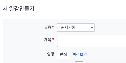 일감 유형에 [공지] 항목을 추가하여 공지사항을 올린 후 알림이 가도록 해야 할 것 같습니다..